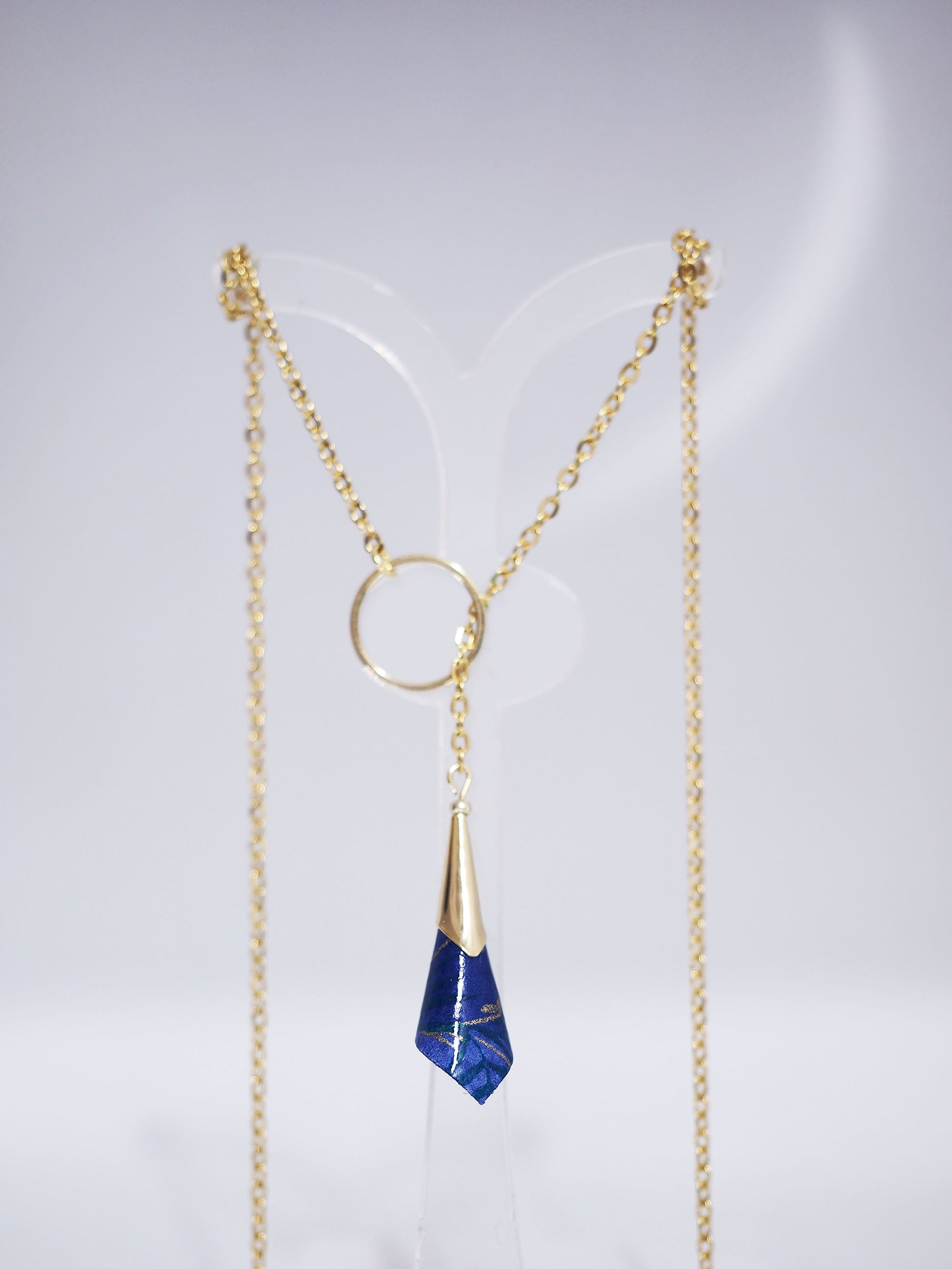Réalisé en véritable papier japonais washi puis protégé par une fine résine, ce bijou allie légèreté, éclat et résistance.